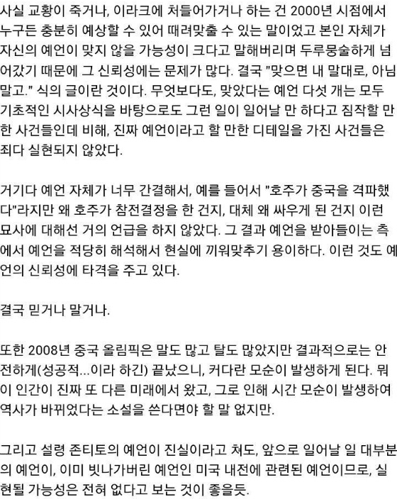 물론 묵은지의 개인적인 생각이지만 예언은 거의 일치하지 않는 것이