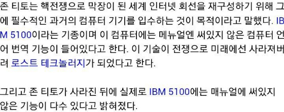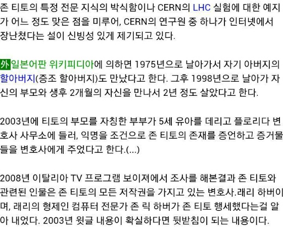 여행자라며 '존 티토'의 황당한 얘기를 소개 한 것을 묵은지도 본
