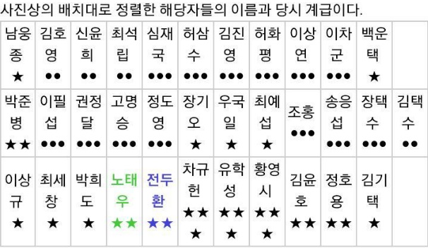 위 사진에 찍힌 12.12군사반란 가담자들의 인적 사항입니다.