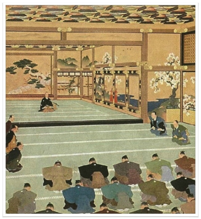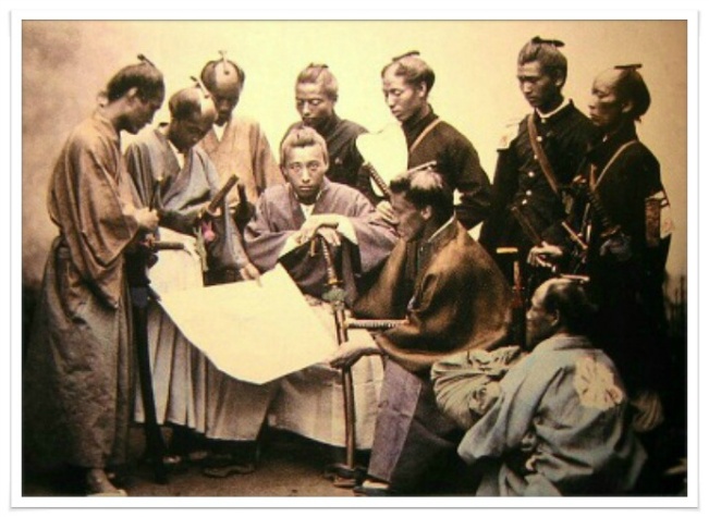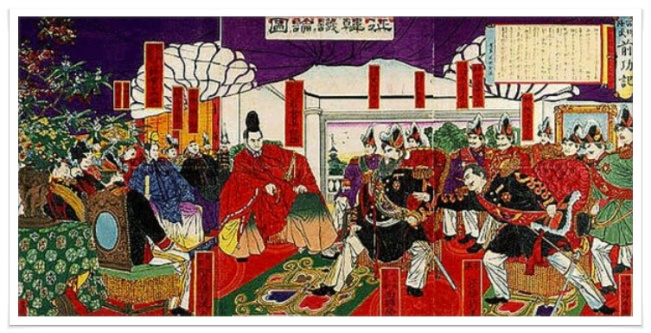 메이지 유신때 막부(바쿠후)파와 반막부파 간에 벌인 보신전쟁. 반막부파의 작전회의 모습