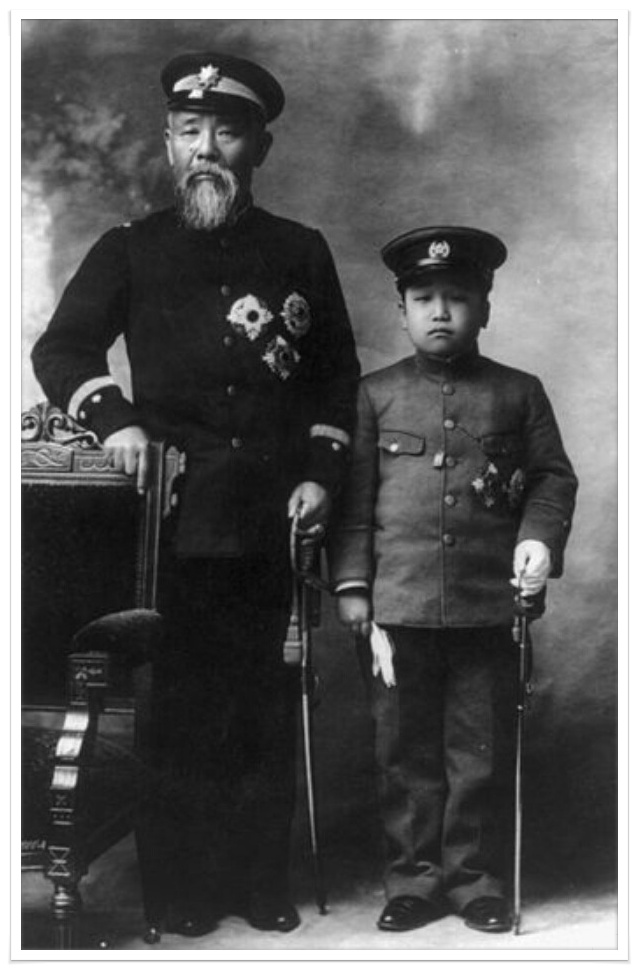 이토 히로부미가 대한제국의 황태자 영친왕 이은과 함께 찍은 사진.