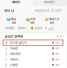 실시간 검색어 1위를 했더군요.