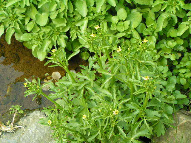 cress라고도 함. 십자화과(十字花科 Brassicaceae)에 속하는 다년생 식물. 유라시아 원산이지만 북아메리카에도 귀화식물로 자라는데, 흐르는 차가운 물에 잠겨서 자라거나 물 위에 뜨거나 진흙 위에 퍼져 자란다. 샐러드에 쓰이는 어린 싹을 얻기 위해 물을 담은 큰 통에다 기르기도 한다. 꽃은 희고 꽃잎이 4장이며, 잎은 가냘프고 밝은 녹색에 톡 쏘는 맛이 나며 아스코르브산(비타민 C)이 풍부하다. 씨꼬투리는 작고 콩처럼 생겼으며 씨가 2줄로 들어 있다. 뿌리는 줄기로부터 제멋대로 난다.