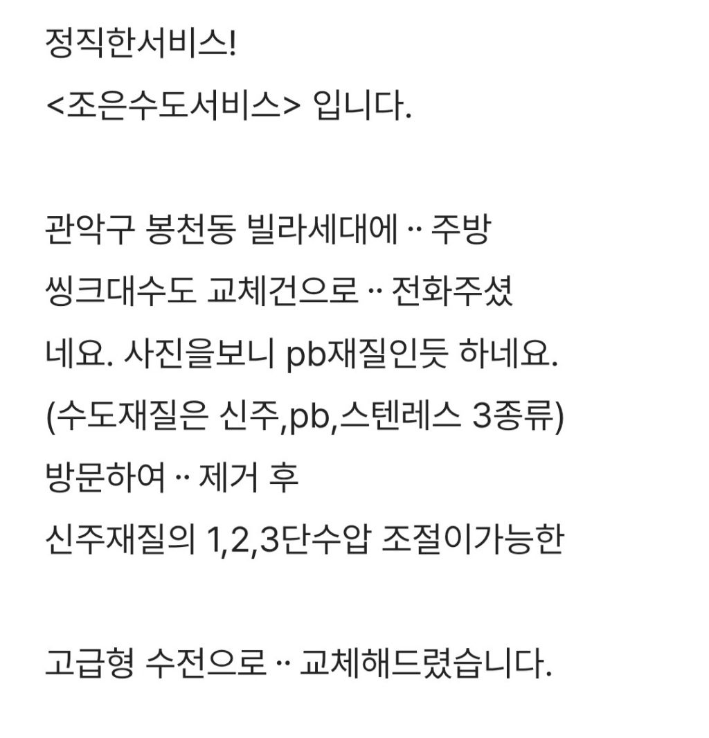 [수도]관악구신림동 씽크대수도감압밸브 보일러배관해빙 ! 작성자스마트홈서비스|작성시간25.11.27|조회수12 목록 댓글 0 글자크기 작게가 글자크기 크게가 010~3999~1181<kbs2오늘아침,생생정보통>고장난 수전고급형수전설치수도배관 해빙#신림동씽크대수도#남현동거위목수전#봉천동언수도해빙#낙성대보일러감압밸브#사당동보일러해빙#인헌동수도감압밸브#보라매동파수도계량기 다음검색 현재 게시글 추가 기능 열기 북마크 공유하기 신고 센터로 신고 댓글 댓글 0 댓글쓰기 답글쓰기 댓글 리스트