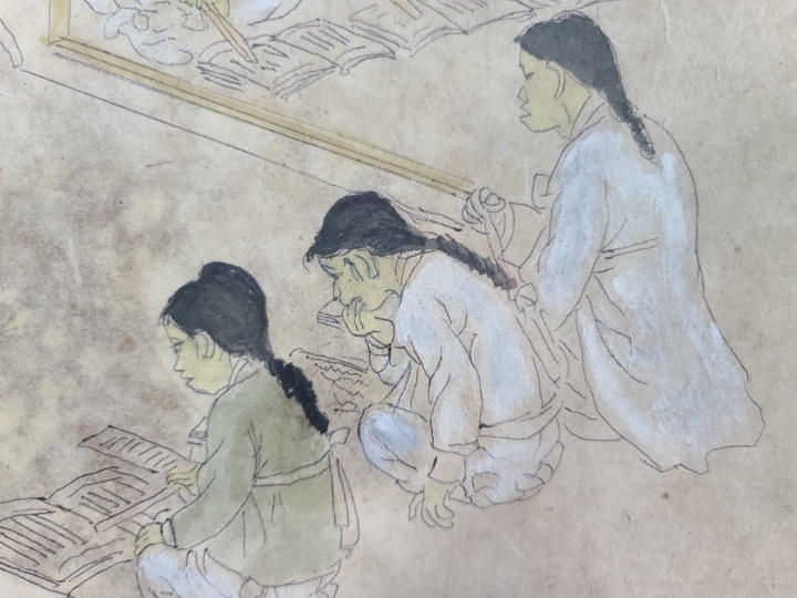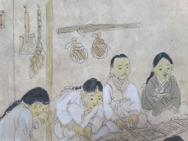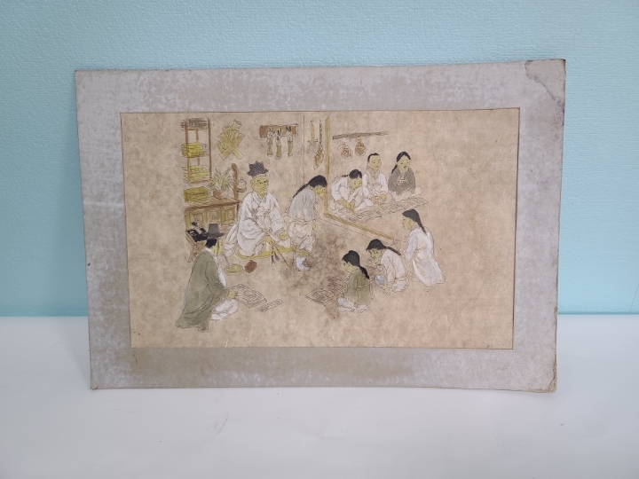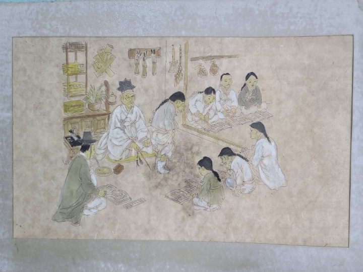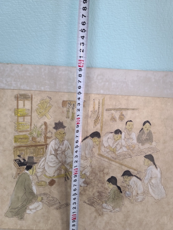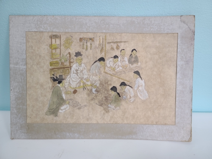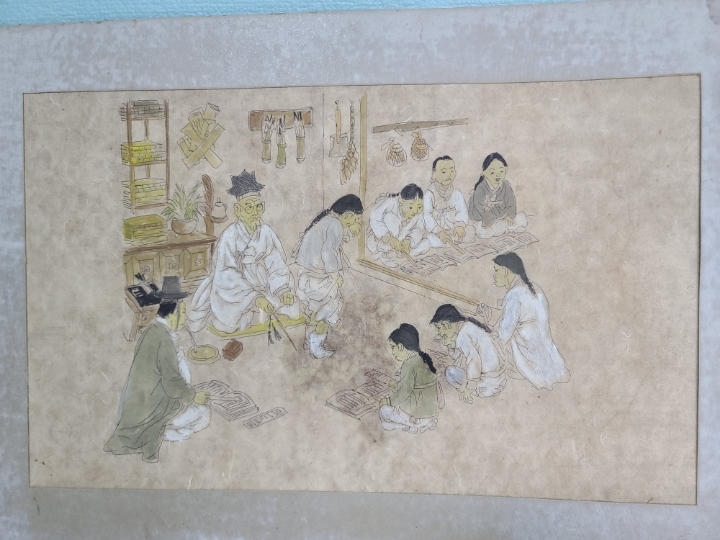 [판매완료]옛날 서당그림 민화 옛날그림 옛날 오래전에 그려진 그림입니다 그림 자체가 아주 재미있습니다 서당에 공부를 하는 서생들과 훈장님이 잘못한 아이를 종아