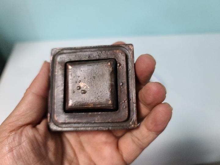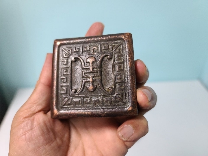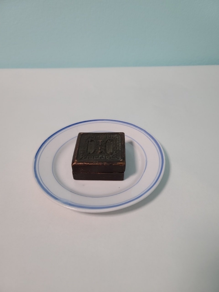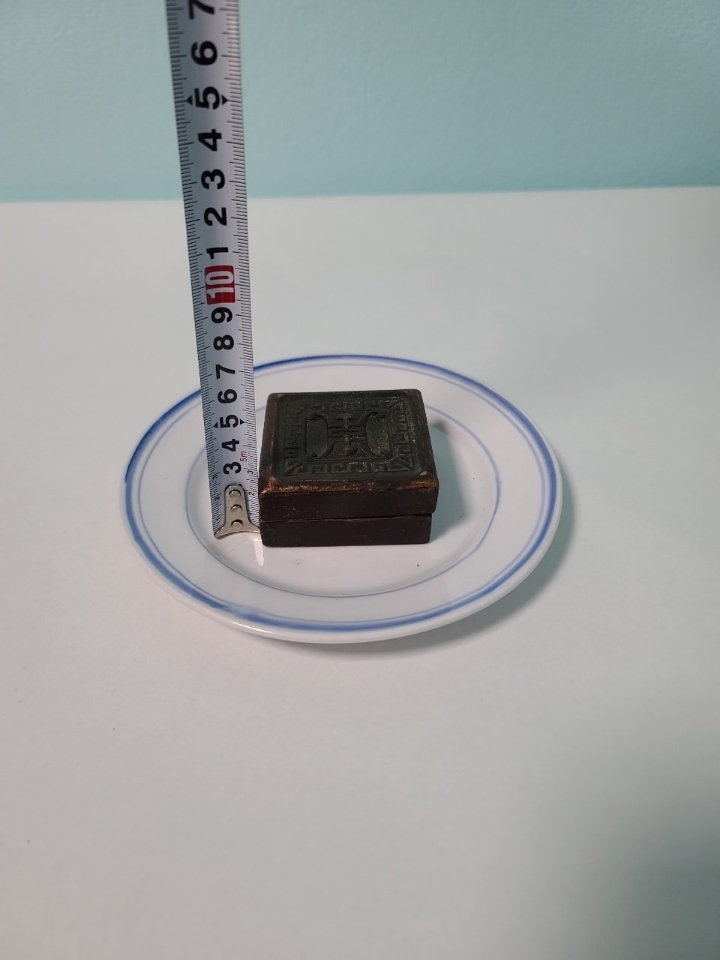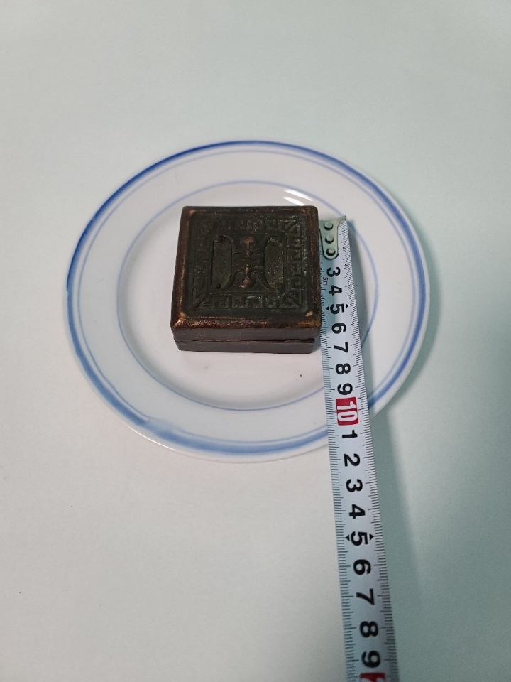 옛날 오래 전에 만들어진 청동 낙관 도장으로 보입니다 오랜 세월 감 느껴지며 수복문 명문이 들어가 있습니다 청동 합 속 안에 또 다른 도장 들어 있습니다