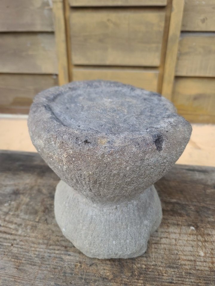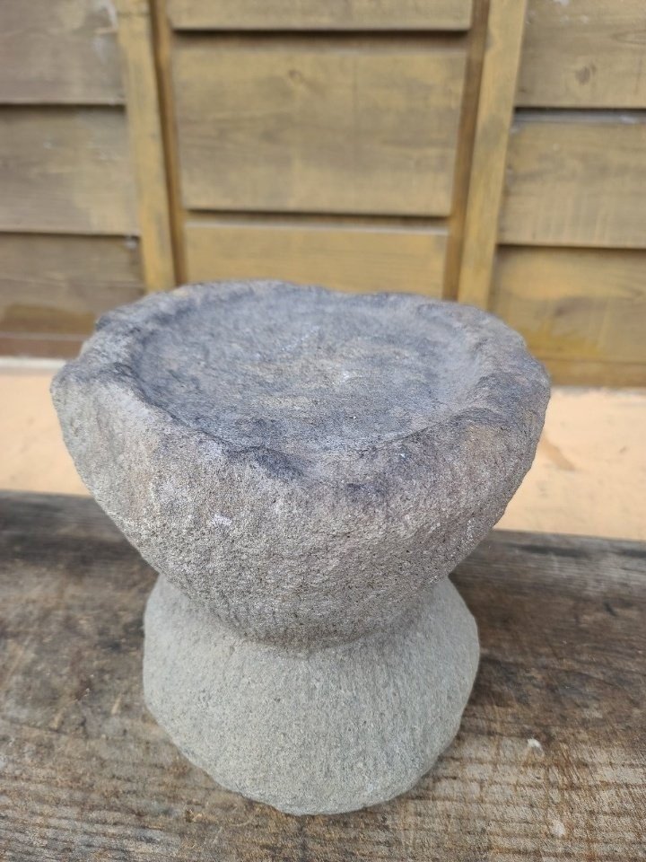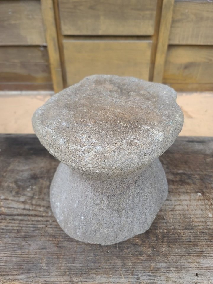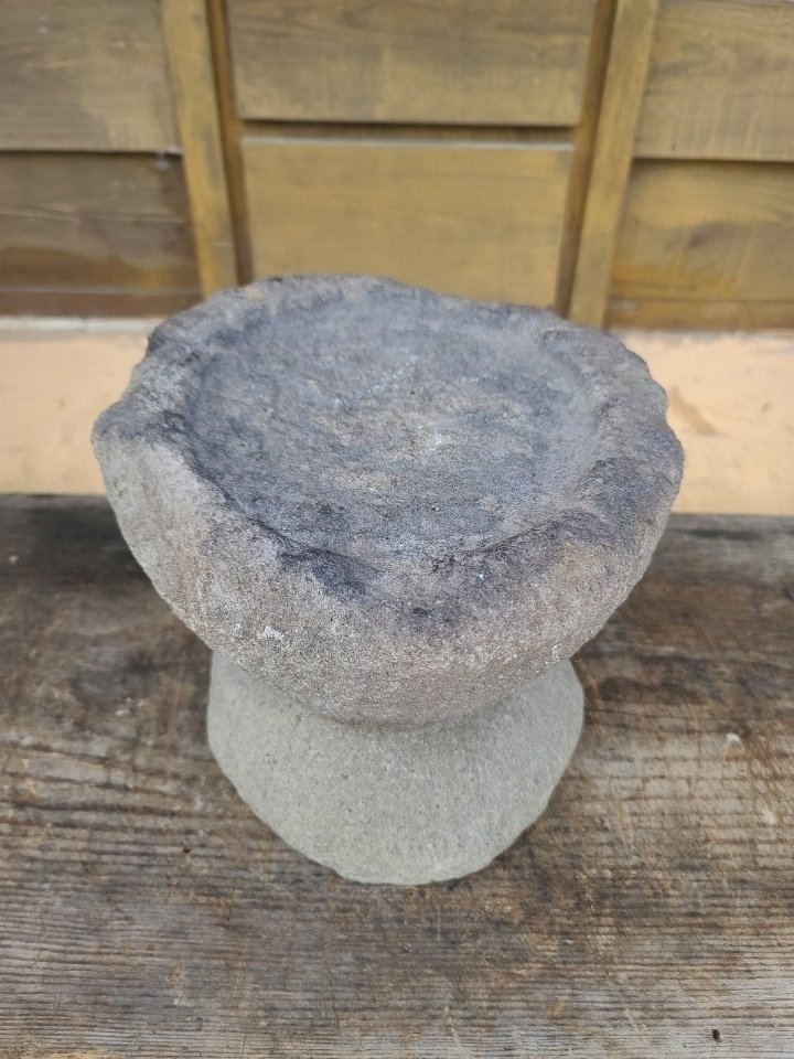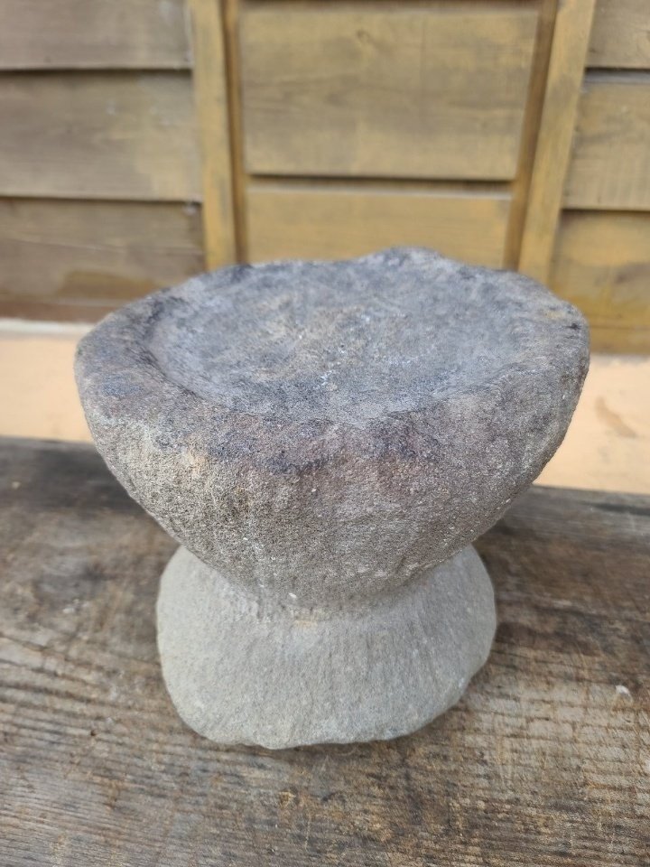옛날 조선시대 정도에 돌을 수작업으로 깎아서 만들어진 매우 희귀한 붓돌 입니다 옛날 성냥이나 라이터 같은 불을 켜는 것이 없던 시절 부싯돌을 켤때 불씨를 올려놓는 불씨 받침대 입니다 여기에서 부싯돌을 켜서 불을 붙여서 부싯돌에서 옮겨 붙은 불을 아궁이 나 다른 곳에 옮기는 것입니다 큰 부잣집 양반집 반가에서나 사용할 수 있었던 것입니다