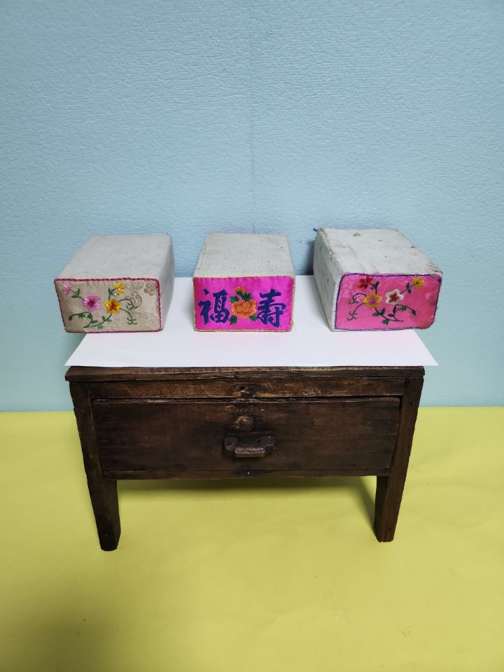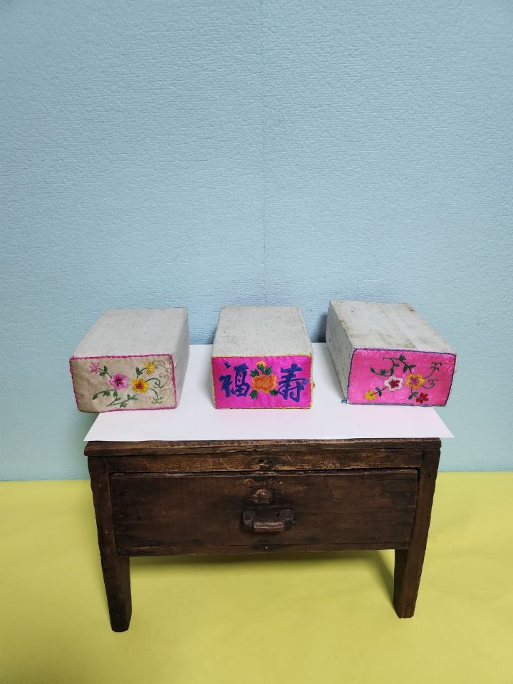 옛날 오래 전에 만들어진 것으로 보이는 손수 베개입니다 나무를 깎아서 틀을 만들고 그 위의 옷감으로 수를 놓아서 베개를 만든 것입니다 다산을 상징하는 예쁜 목단꽃 길상문 야생화 명문이 들어가 있습니다 세월의 때는 조금 있지만 상태 양호하고 좋습니다 엔틱 빈티지 소품 전시 자료 장식용 실사용 수집품 다 좋습니다