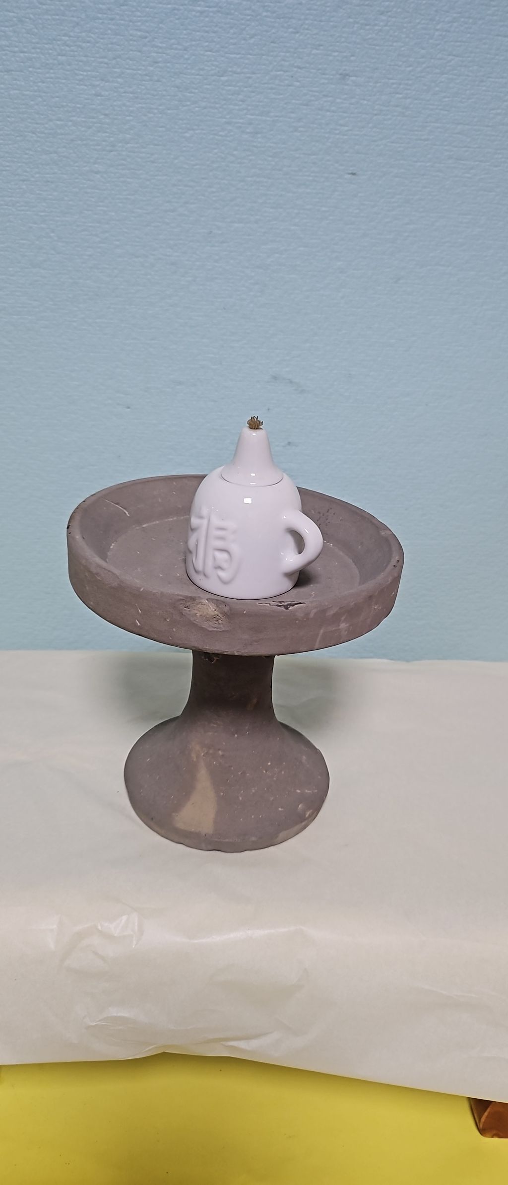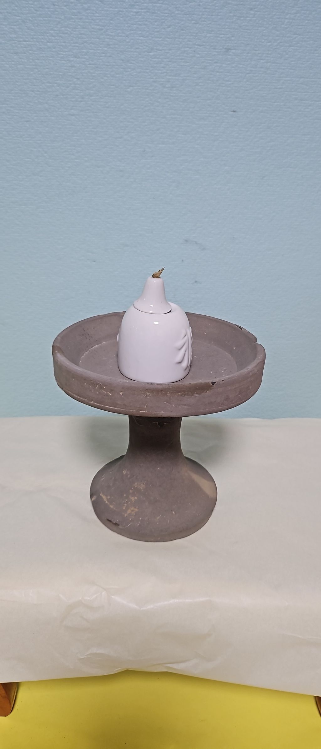 옛날 오래전에 만들어진 것으로 보이는 토기 등잔 대와 몇 십 년 전에 만들어진 것으로 보이는 도자기 호롱입니다 토기 등잔 대는 잘 볼 수 없는 귀한 거 같습니다 세월의 상처 있습니다 엔틱 빈티지 소품 전시 자료 장식용 실사용 수집품 다 좋습니다