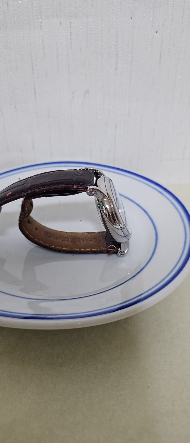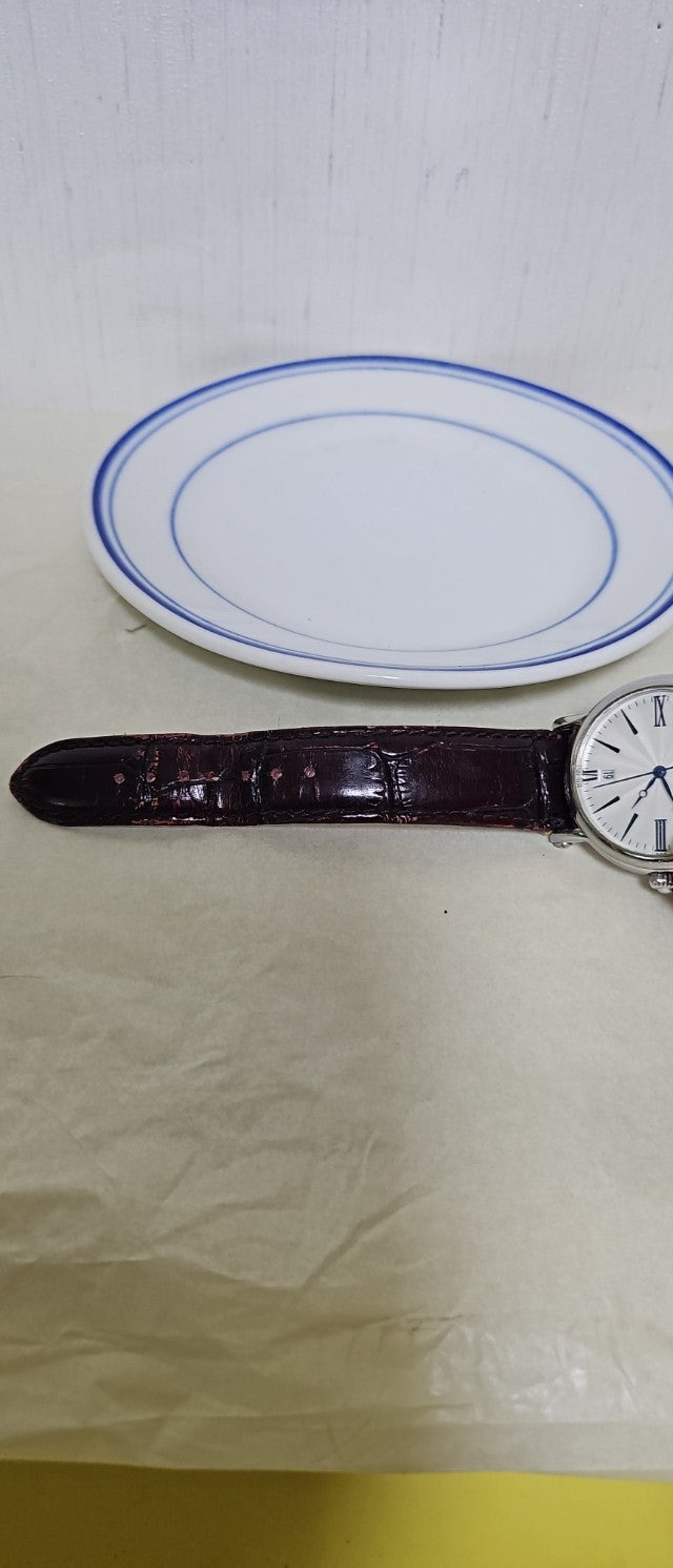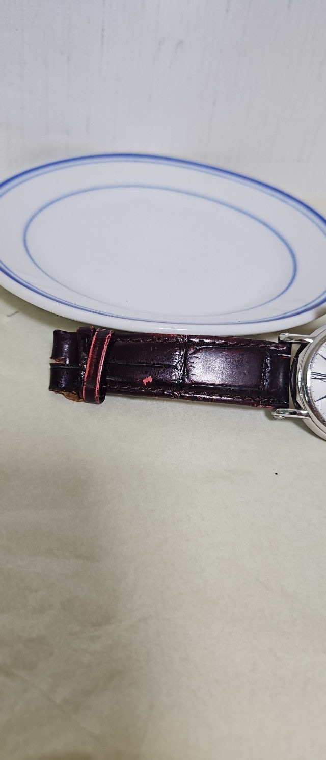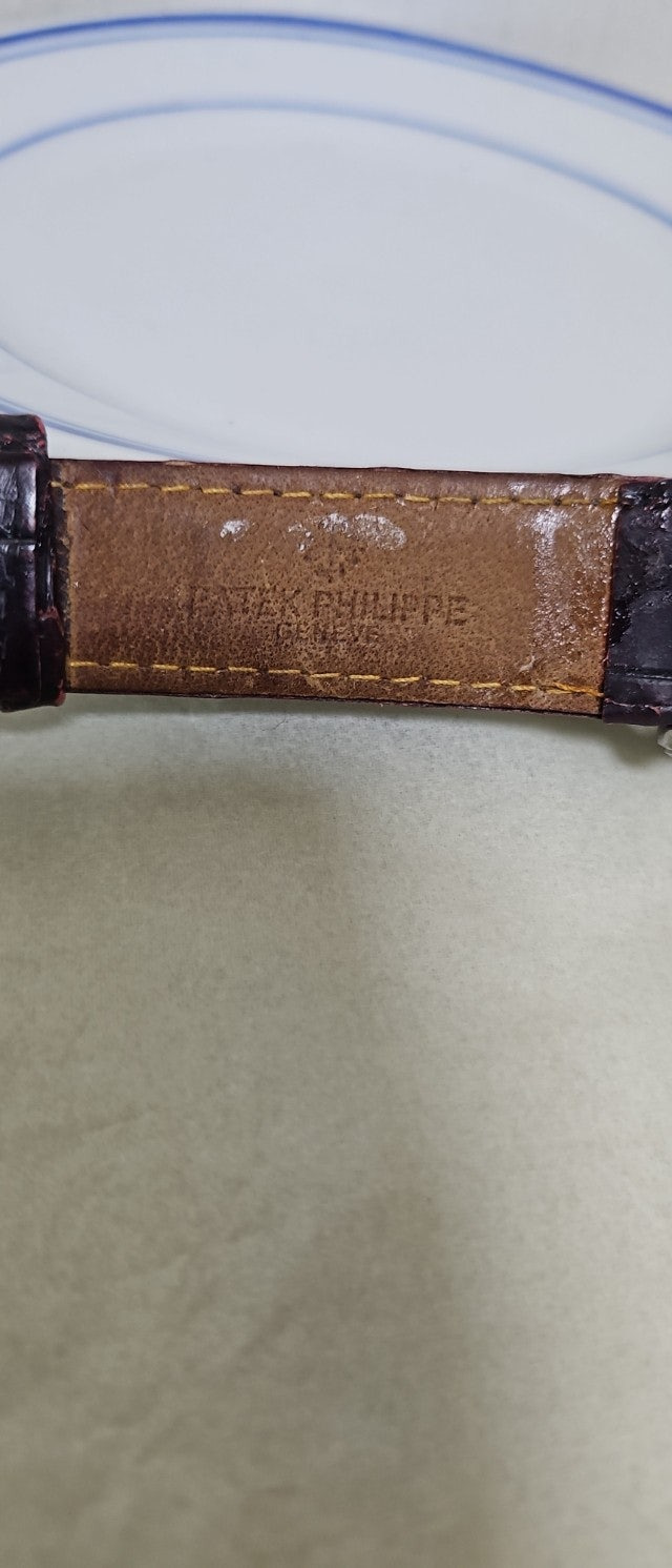 오랜 세월 흐르면서 육안으로 잘 보이지 않는 세월에 때 상처가 있습니다만 상태가 좋아 보입니다 시곗줄 자체에도 로고가 쓰여져 있고 뒷면에는 순금으로 된 로고와 문양 들어가 있는 것 같습니다