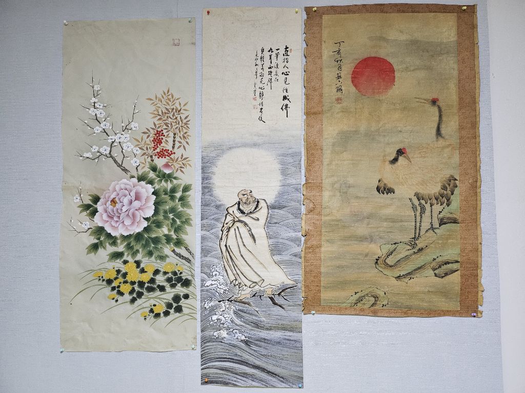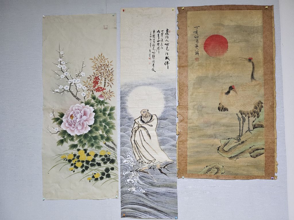 옛날 그림 고화 운학도 달마 매죽도 그림입니다 운학도는 백년 전 후 오래전에 그려진 그림으로 보입니다