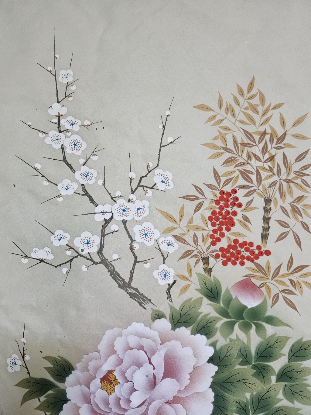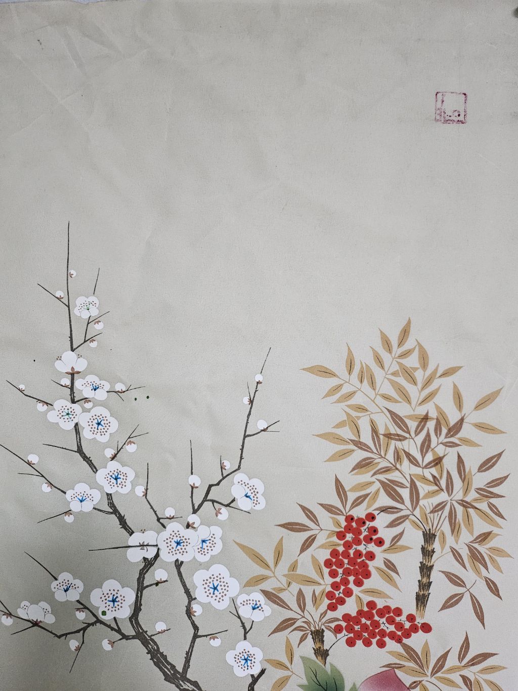 천바닥에 그린 매죽도 그림 솜씨 아주 좋습니다 낙간 작가 수결되어 있습니다만 누구인지 잘 모르겠습니다. 그림 주인 찾으면 가치가 상당히 높아지는 것도 있습니다 엔틱 빈티지 소품 전시 자료 장식용 실사용 수집품 다 좋습니다