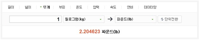 키로가 2.2 파운드입니다. 그러니까 미국에서 파운드로 표기된 무게를 키