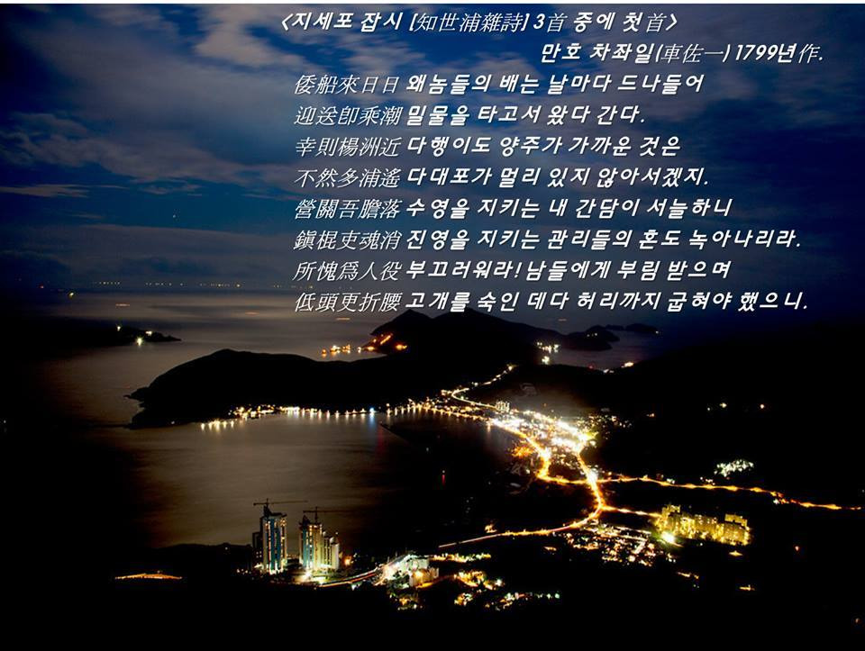 2) <지세포를 지키면서 [知世浦雜詩] 3首> 차좌일(車佐一 1753∼1809) 1799년作.