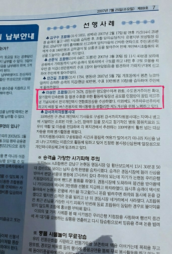 ㅡ개인택시연합회장 감사패(신한카드 충전포인트 및 수수료지급)