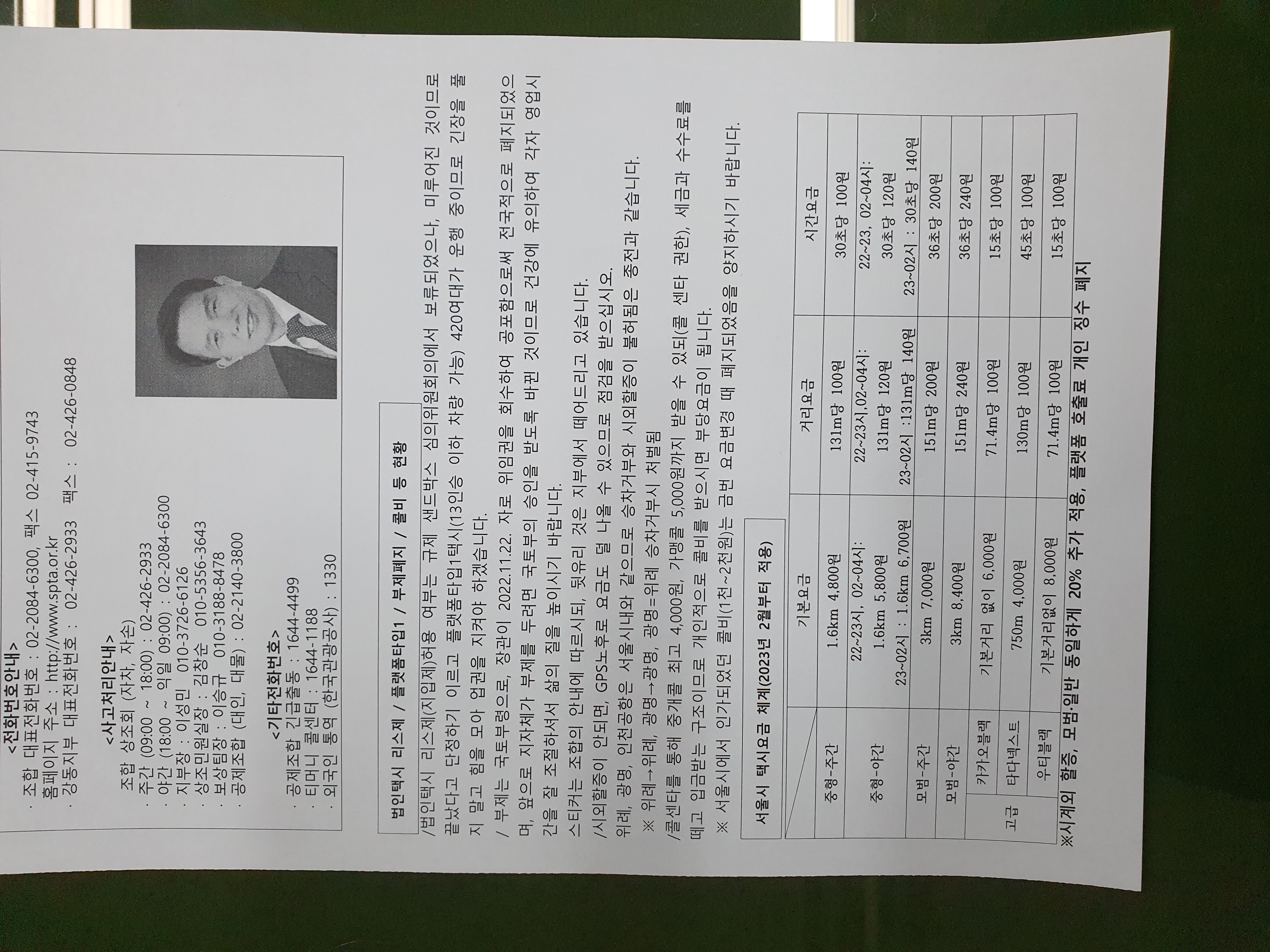 1. 2월부터 적용되는 택시요금 체계입니다(사진 참조)