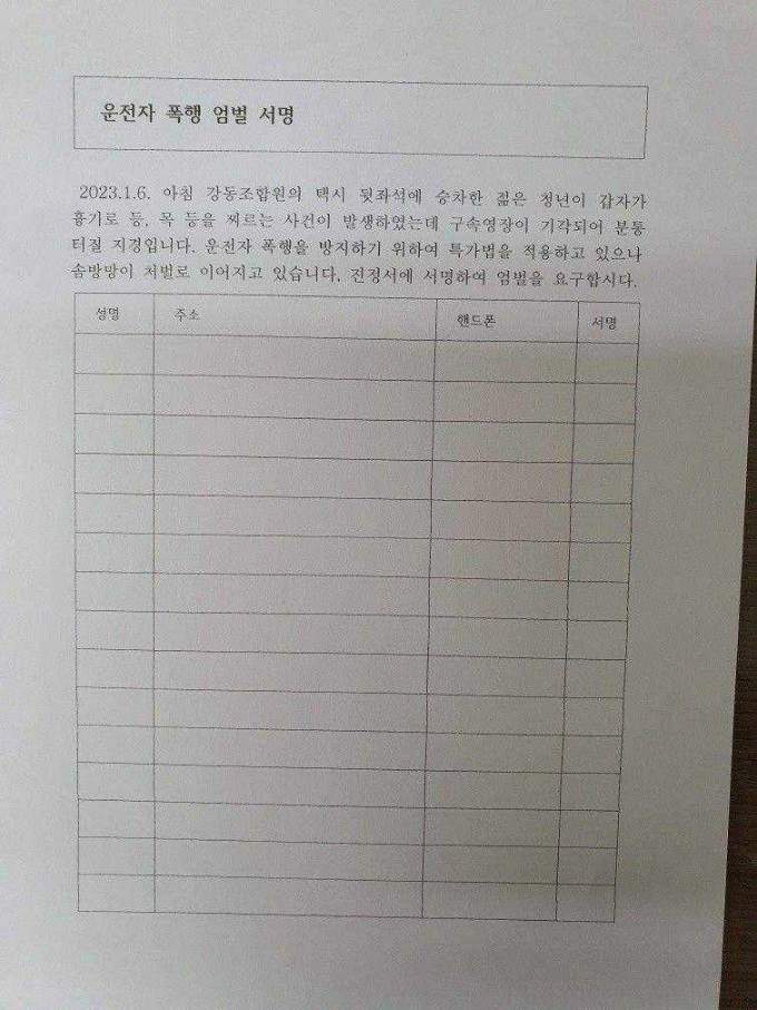 2.28까지 서명해주십시요.(사진 참조/ 강동지부, 둔촌ㆍ상일충전소)