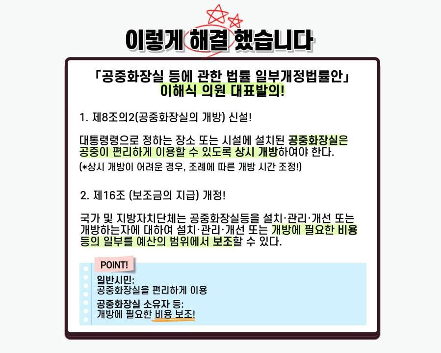 이해식 국회의원께서 시민들이 편안하게 이용할 수 있도록
