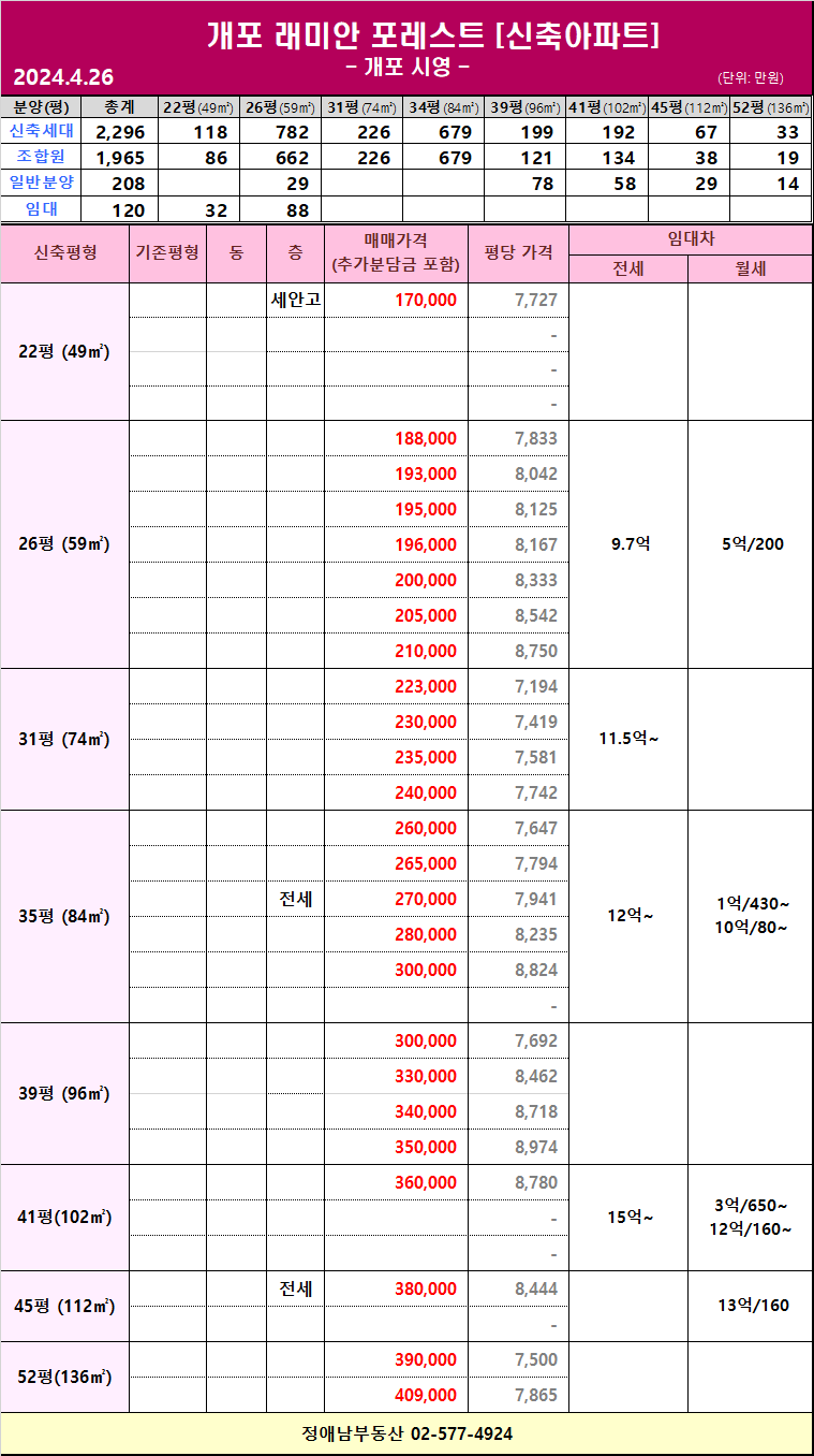 조합원 매물은 입주 혹은 임대차를 맞췄기 때문에