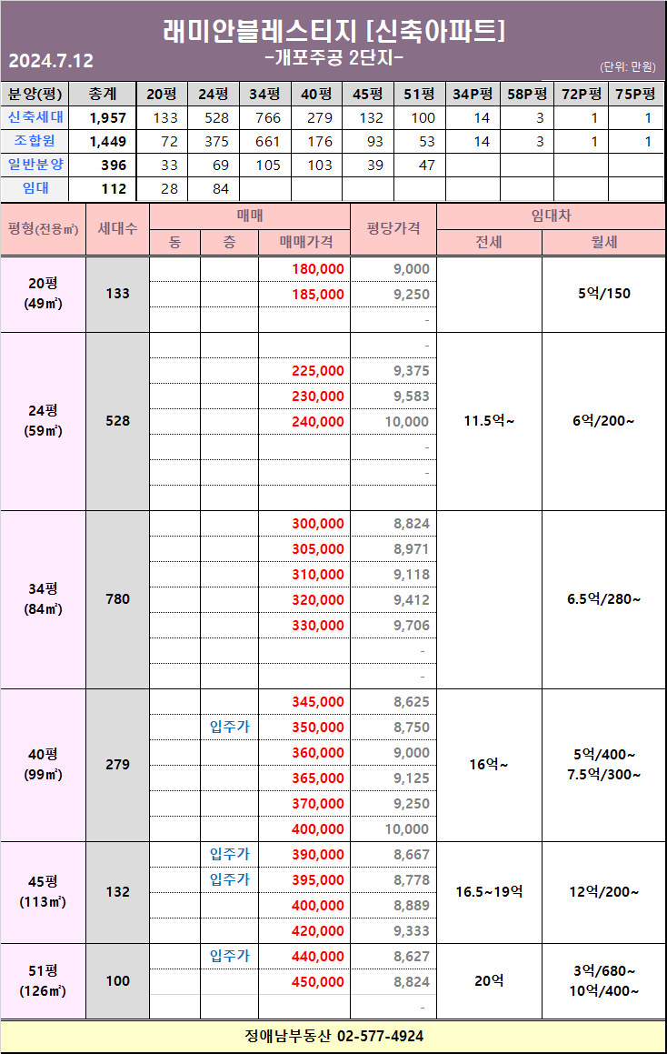 개포지구 신축 아파트 24평형의
