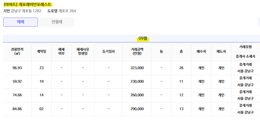 오늘 개포동 신축아파트 실거래가를 찾아보니