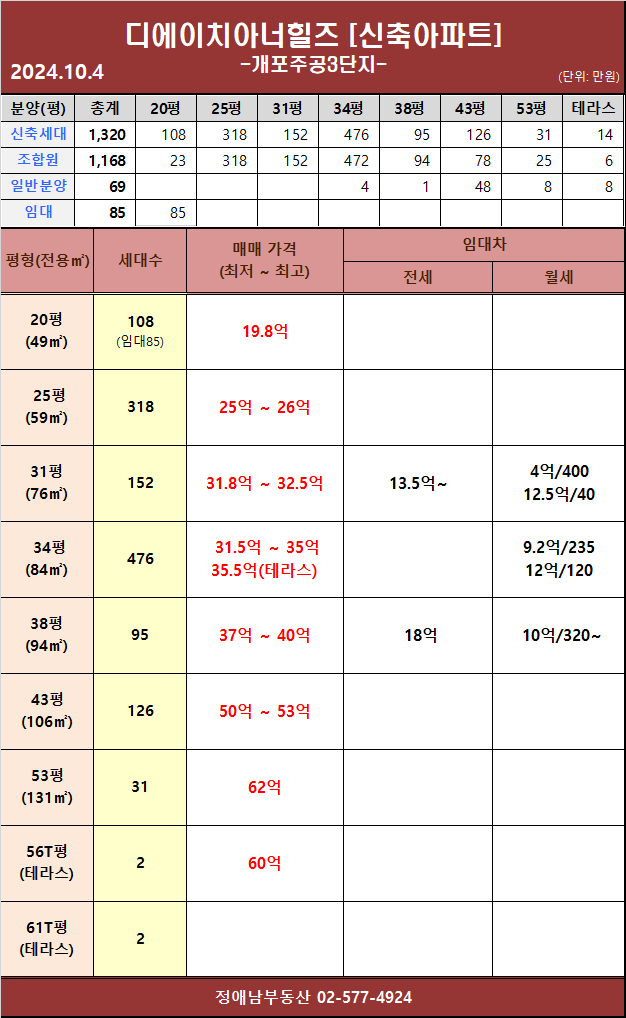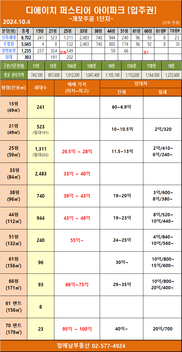 디에이치 퍼스티어 아이파크 84타입의 전세는