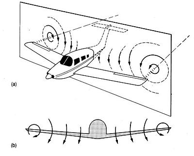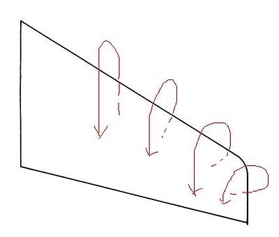 속박와류는 위에서 설명했고 날개끝 와류(Wing Tip Vortex)는 날개 윗면은 부압(-)이고 아랫면은 정압(+)이기 때문에 날개의 앞전이던 뒷전이던 아무곳으로나 위로 올라오려는 흐름이 생기는데 그로 인해