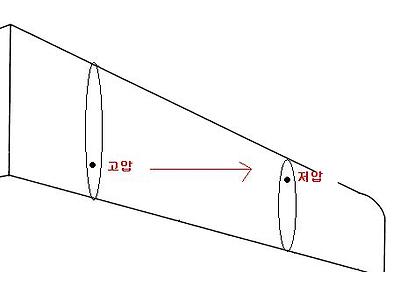 속박와류란 날개골로 봤을 때 앞전이 왼쪽, 뒷전이 오른쪽인 그림을 두고 설명했을 때