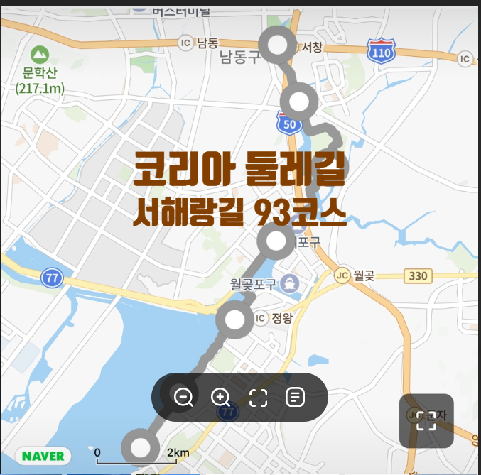 ● : 코스: :시흥배곳한을공원:월곶포구:소래습지생태공원:남동체육관