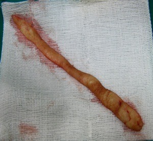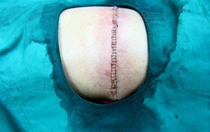 흉터제거후 녹는실을 사용하여 일차적으로 봉합한 모습