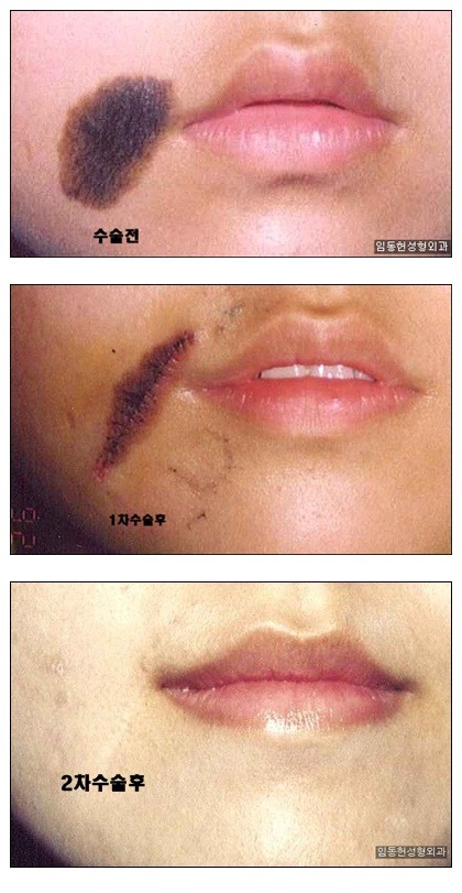 입가의 큰점으로 2차례의 수술로 제거된 모습 입니다.