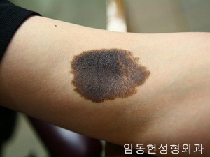 저는 복숭아뼈 위쪽으로 가로5cm, 세로5cm가량의 둥근큰점이 있어요.