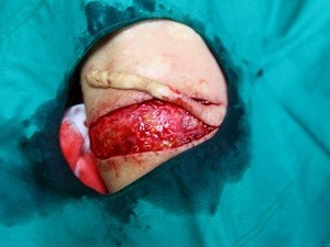 안쪽을 일차 봉합한 모습입니다.
