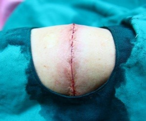 겉부분을 이차 봉합한 후 입니다.
