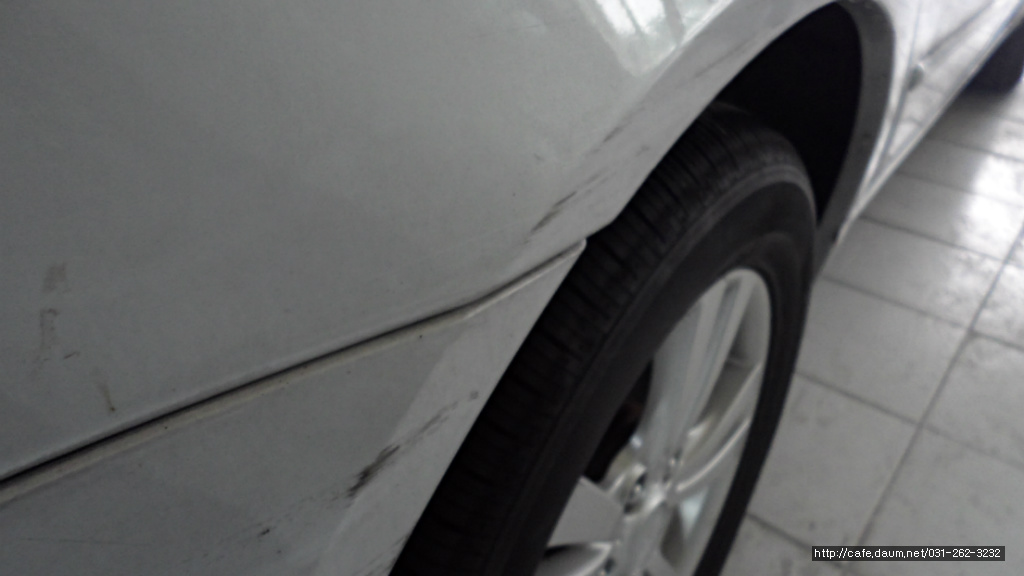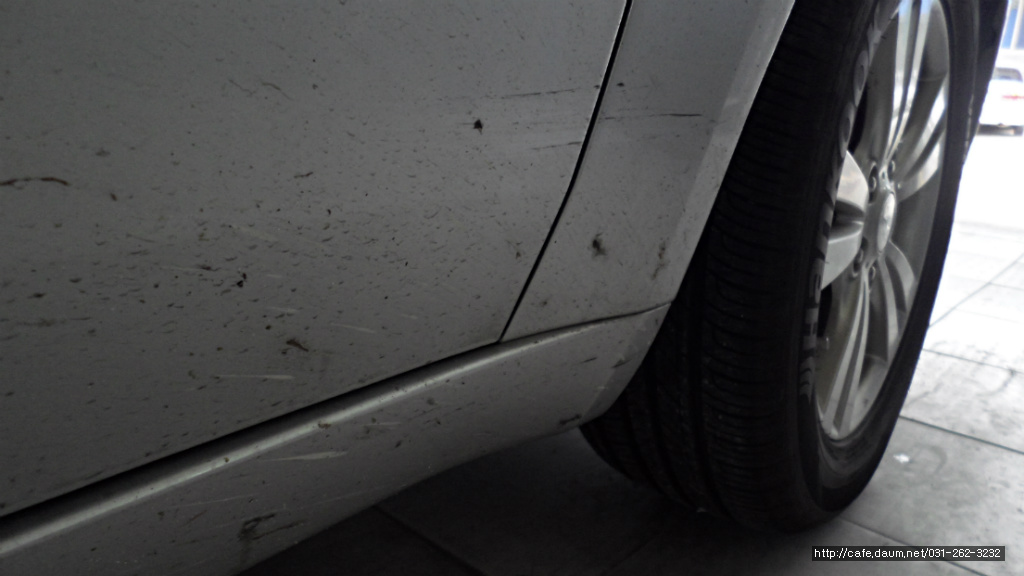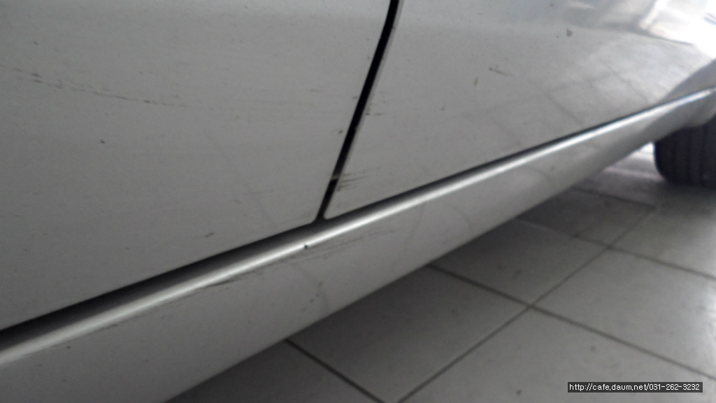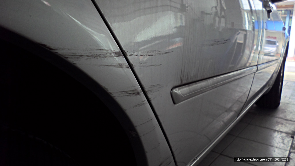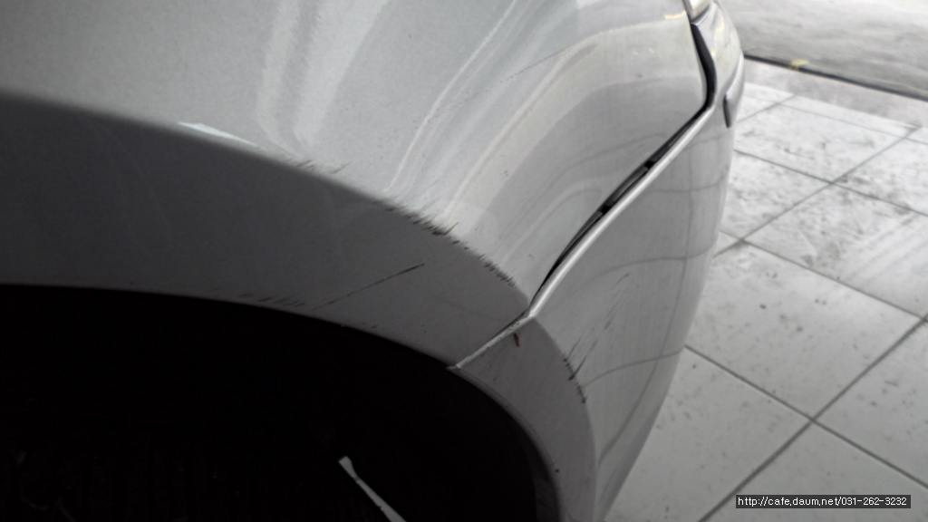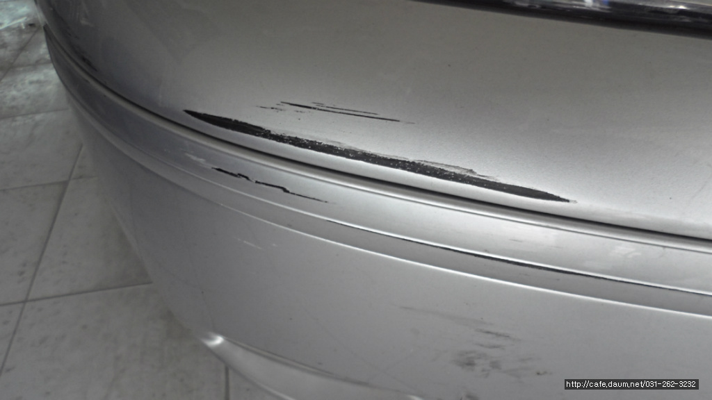 사진을 보시면 운전석 앞범퍼에서부터 뒷범퍼에까지 운행중 사고에의한 흠집과