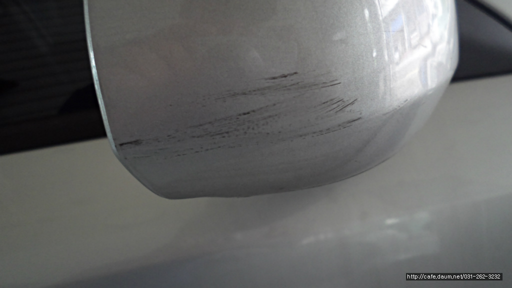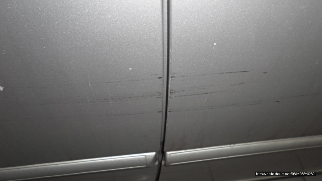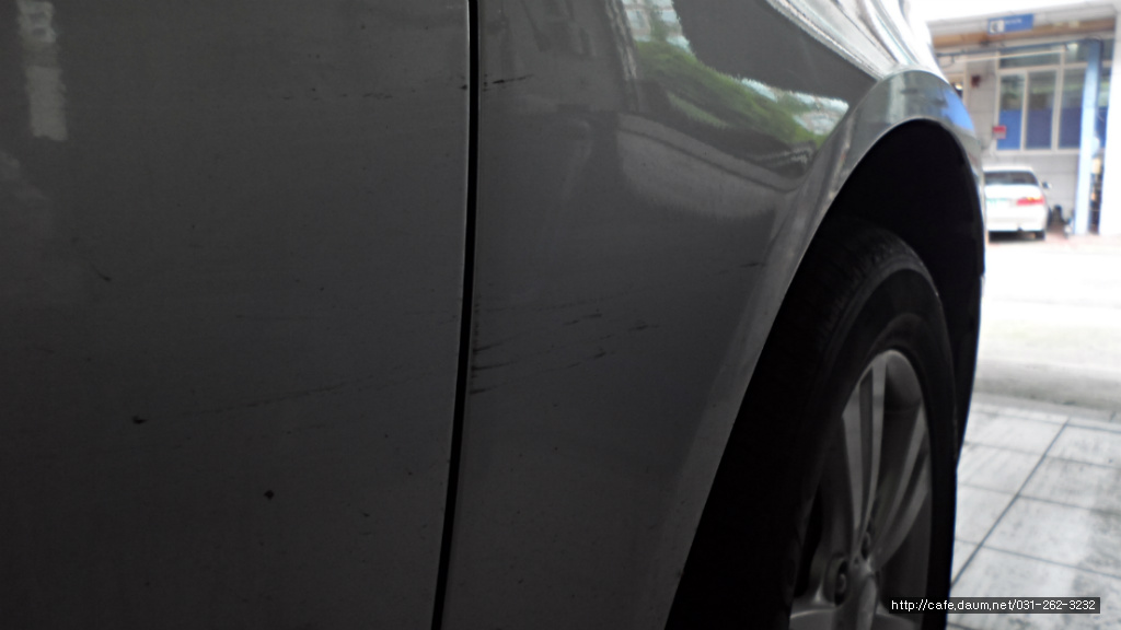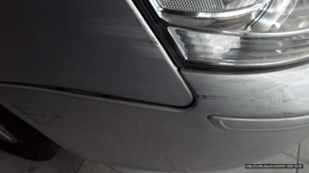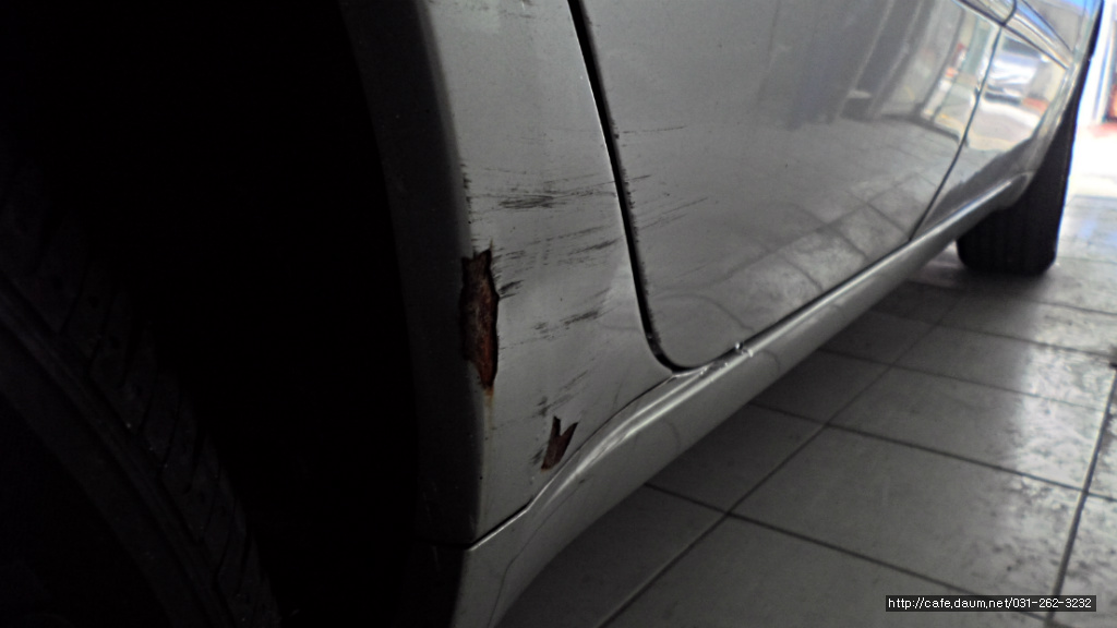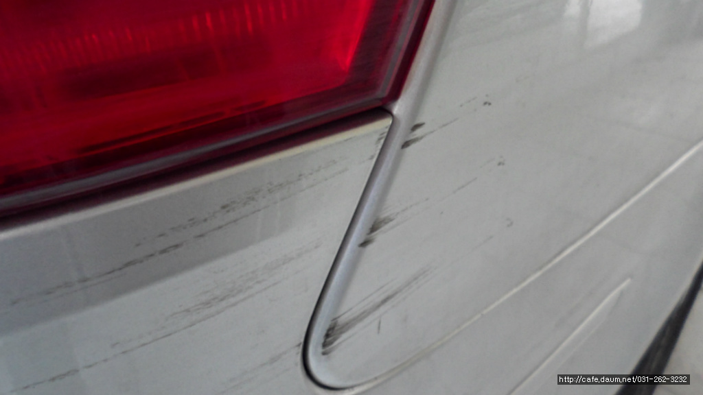 사진을 보시면 운전석 앞범퍼에서부터 뒷범퍼에까지 운행중 사고에의한 흠집과
