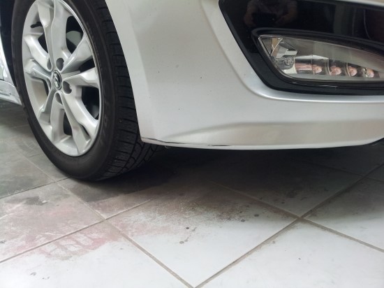 조수석 앞범퍼 하단에 깊게 패인 상처입니다.