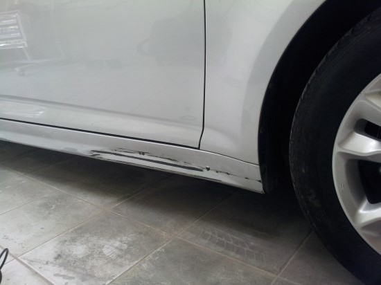 조수석 하단 스텝 앞쪽은 플라스틱 재질로 생각보다 상처가 깊었습니다.
