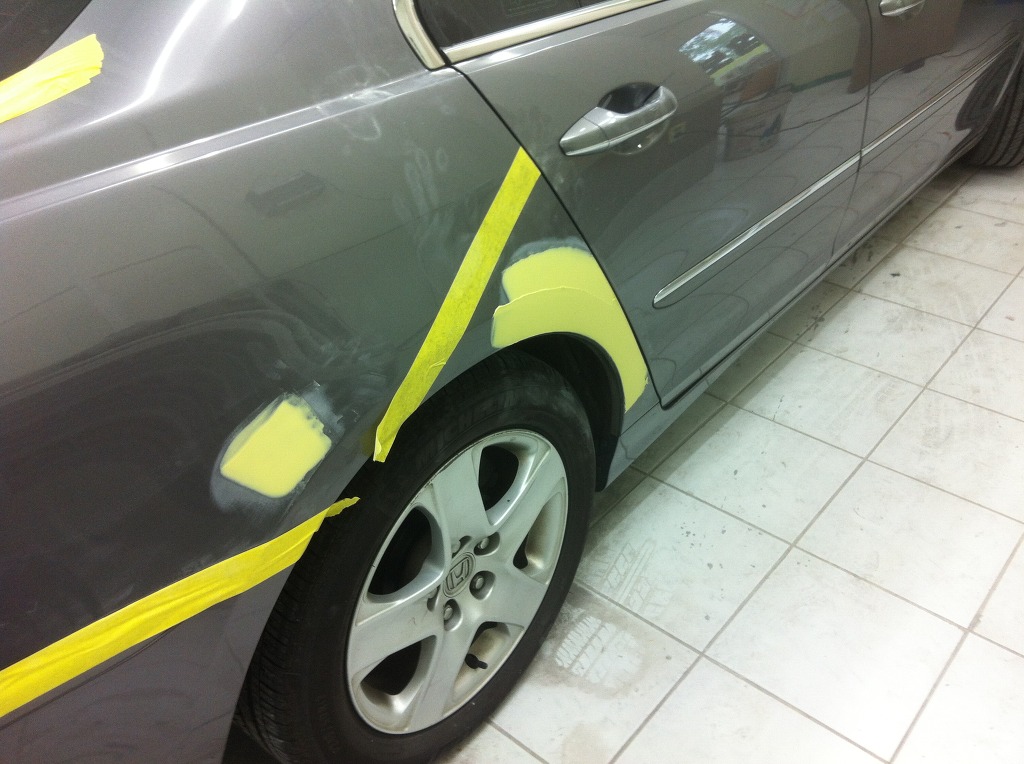 조수석 뒤휀다 부분쪽에서 퍼티가 약간 노출되었네요.