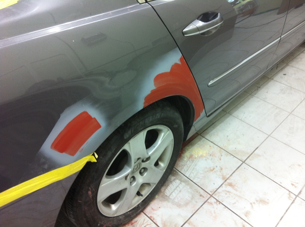 조수석 뒤휀다도 마찬가지로 레드퍼티 도포 완료