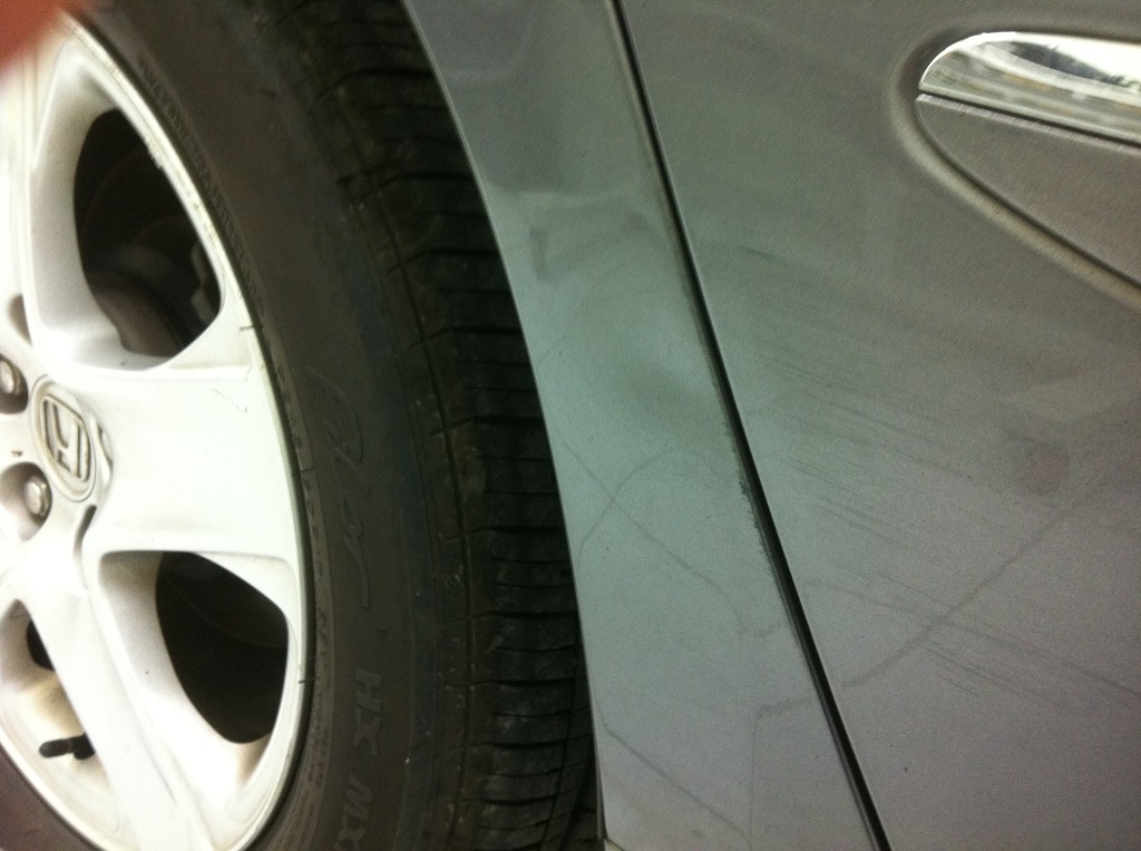 휀다라인을 타고 아래쪽으로 보시면, 문콕처럼 들어간 부분이 군대군대 있습니다.
