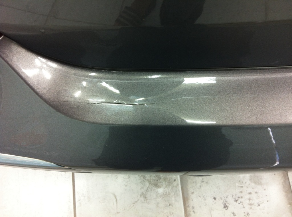 뒷범퍼는 플라스틱이 갈라진 상태에 틈이 벌어져 플라스틱 용접을 하였습니다.