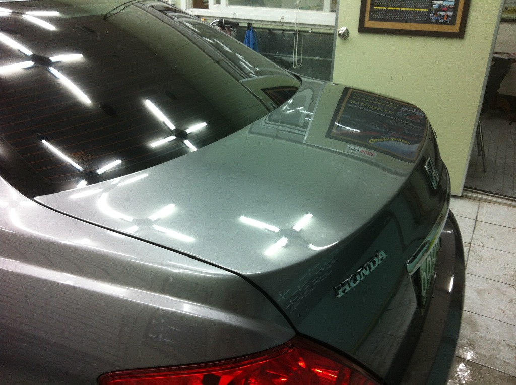 트렁크와 뒷범퍼는 퍼티가 노출되지 않고 잘 연마가 되었습니다.