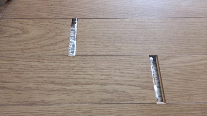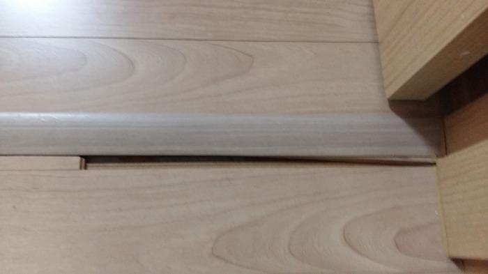 강화마루는 늘어나서 솟는것을 방지하기 위해 벽같이 붙는곳에서는 1cm정도 여유를 두고 시공합니다. 따라서 살다보면 마루가 한쪽으로 쏠리는 경우가 많이 발생합니다. 1번 보수방법에서 말씀드린대로 고무망치를 이용하여 마루를 빠진쪽으로 다시 밀어 넣으시면 됩니다. 다시 빠지는것을 방지하기 위해서는 실리콘 코킹을 부분적으로 하시는것이 낳을듯 합니다.