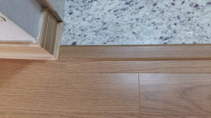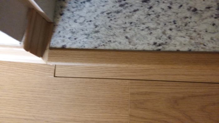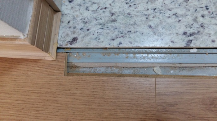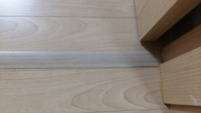 2. 현관 대리석앞 마루틈새는 마루가 빠져 발생합니다. 마루의 끝부분을 많이 밟다보면 마루가 빠지는 경우가 있습니다. 더군다나 마루가 짧을경우는 더하지요. 확장파일(마감쫄대)을 제거한후 이물질 청소후 목공용 본드를 이용하여 마루를 끼운후 확장파일을 덮으면 완료