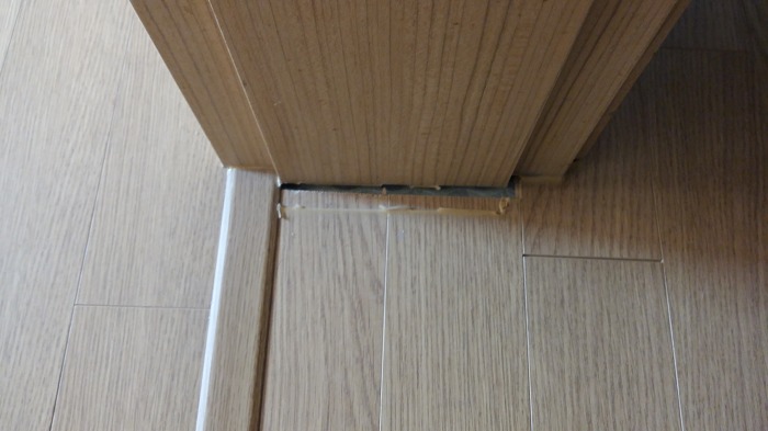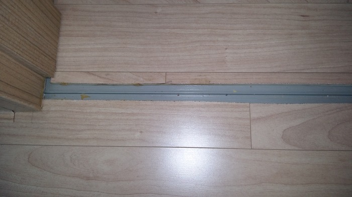 3. 방문앞 쫄대를 밟을때마다 소리가 나는 경우는 쫄대 밑판이 떨어지거나, 윗판이 밑판에 제대로 끼워지지 않아 발생합니다. 쫄대(확장파일)를 제거후 밑판까지 제거한 후 이물질을 청소합니다. 밑판을 핫멜트와 실리콘으로 접착한후 확장파일을 덮으면 완료.
