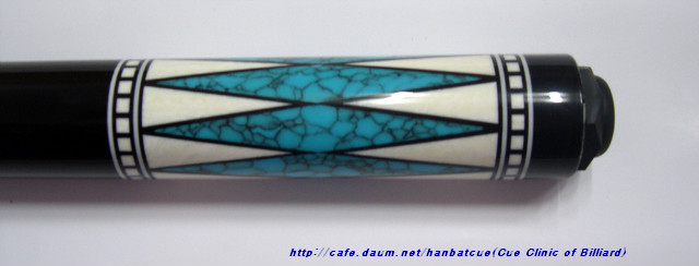 8검 방식. 흑단 기본에 흰색 수지와 터키석의 조화