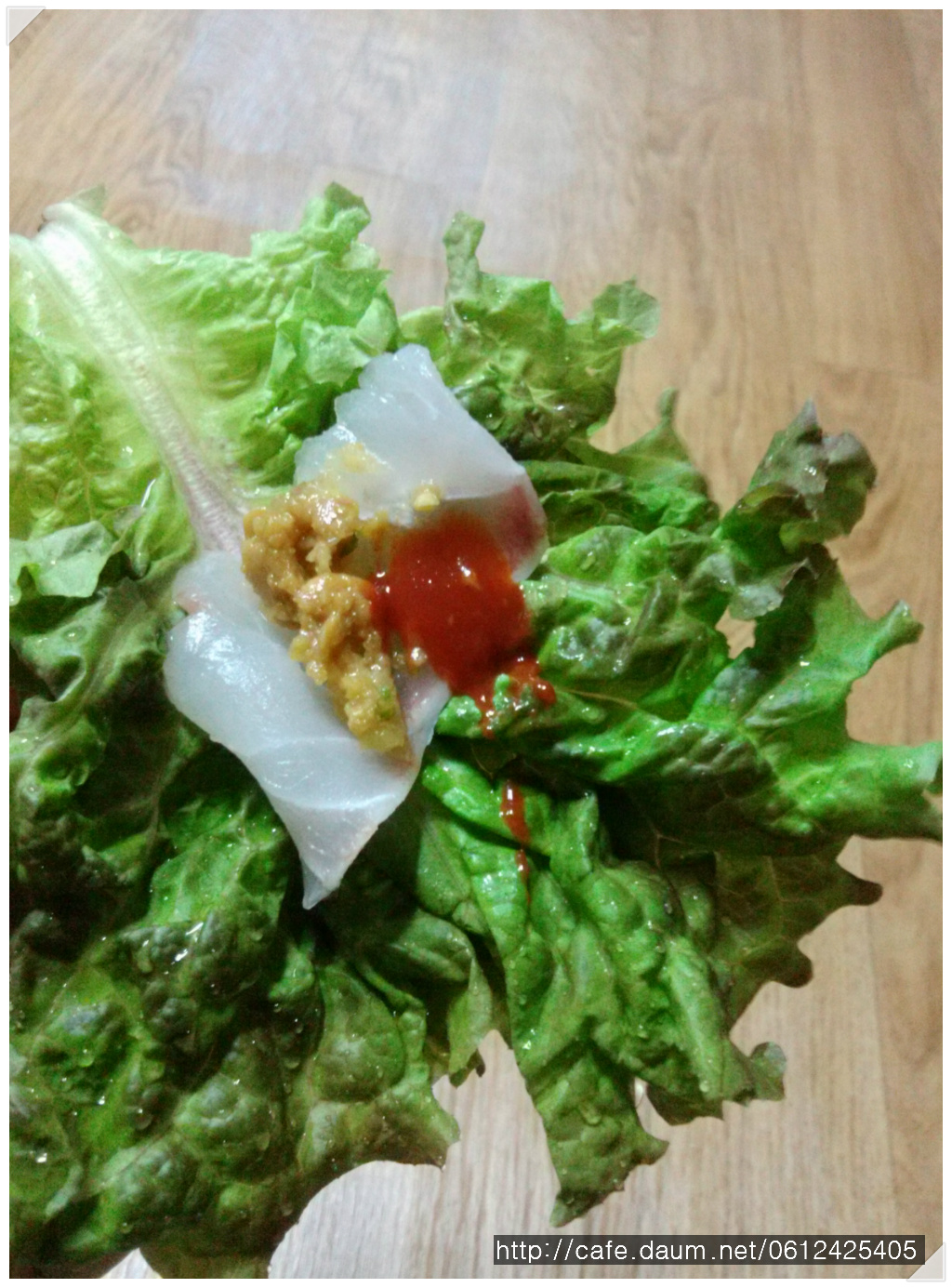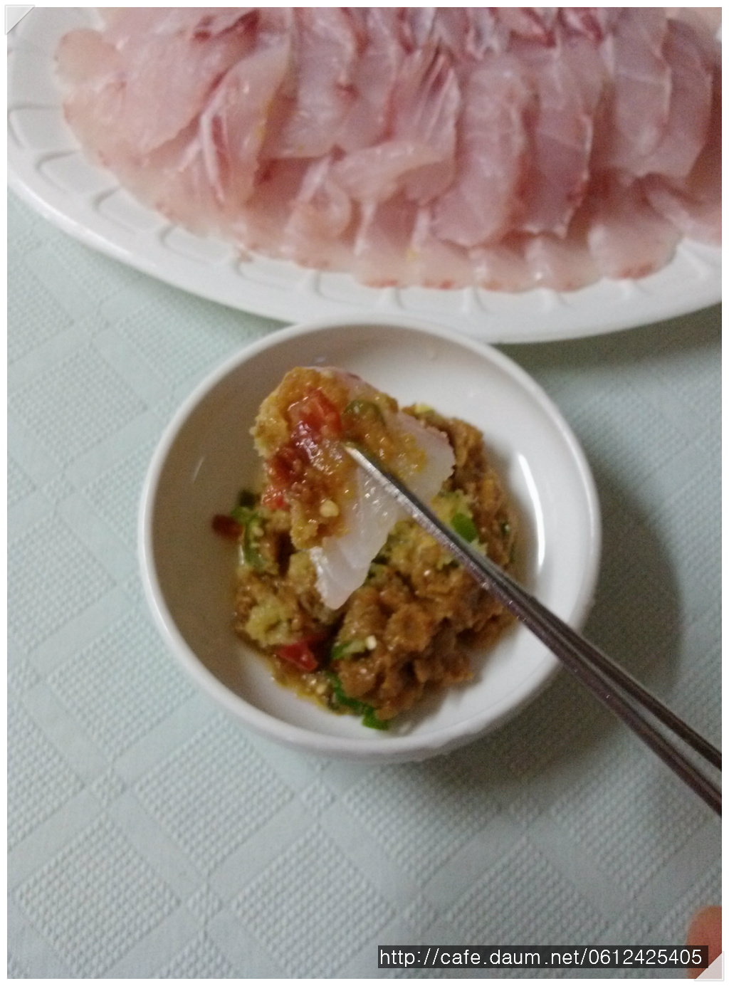 민어는 된장과 참기름 고추, 파, 다진마늘을 넣은 양념장에 먹으면 맛나요~