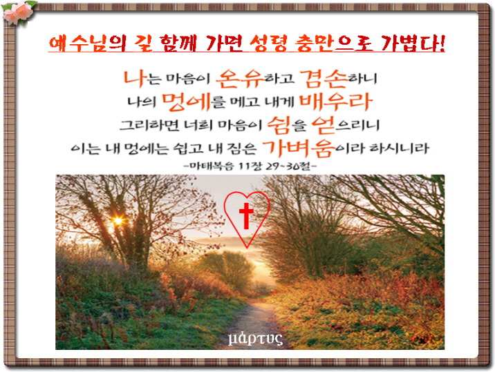 마음의 쉼을 얻게 되는 예수님 핵심 말씀! 작성자μάρτυς|작성시간19.12.11|조회수150 목록 댓글 4 글자크기 작게가 글자크기 크게가 세상을 새로게 갈아 엎는 멍에를 예수님과 함께 메고 배우는 것!그러면 성령의 충만한 선물을 받아 멍에는 쉽고 내 짐은 가볍다! 다음검색 현재 게시글 추가 기능 열기 북마크 공유하기 신고 센터로 신고 댓글 댓글 4 댓글쓰기 답글쓰기 댓글 리스트 작성자totodaud | 작성시간 19.12.11 할렐 루야아ㅡ멘 아ㅡ멘귀한 은혜의 자료 잘 활용 하겠습니다감사 합니다 목사님 작성자백종관목사 | 작성시간 19.12.11 감사합니다. 작성자육광철 | 작성시간 19.12.12 감사합니다. 작성자정수철 | 작성시간 19.12.12 샬롬!감사감사 드립니다^^ 댓글 전체보기