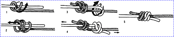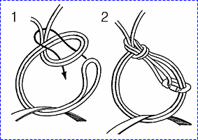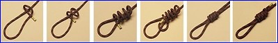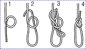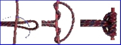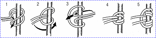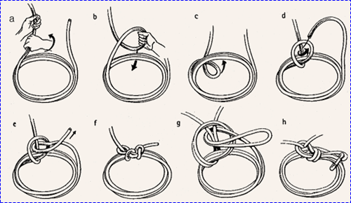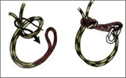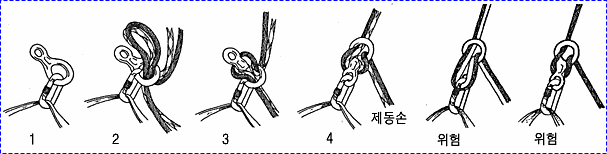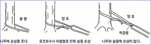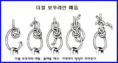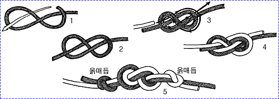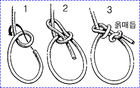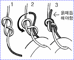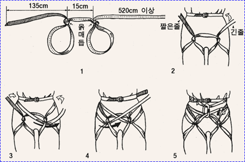굵은 로프 두줄에 둥근 나무를 사다리 모양으로 여러개 묶어 45도 정도의 경사로 고정 시킨 후 한손으로 나무 사다리를 잡고 몸을
